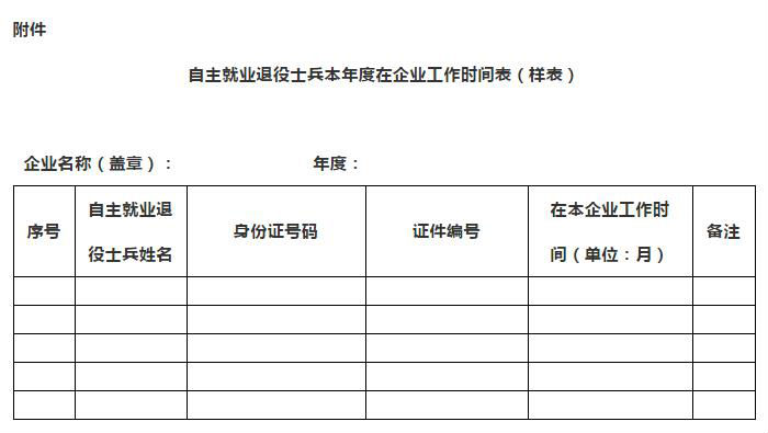 附件:自主就业退役士兵本年度在企业工作时间表(样表)