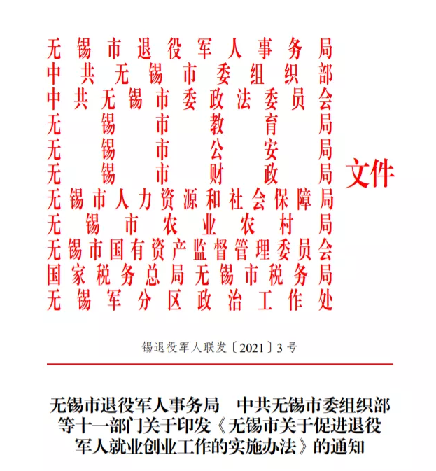 《无锡市关于促进退役军人就业创业工作的实施办法》正式施行!