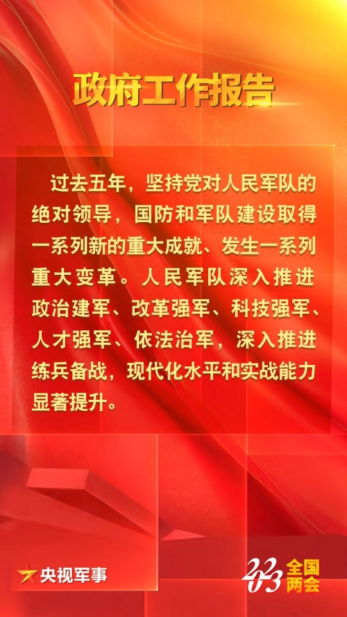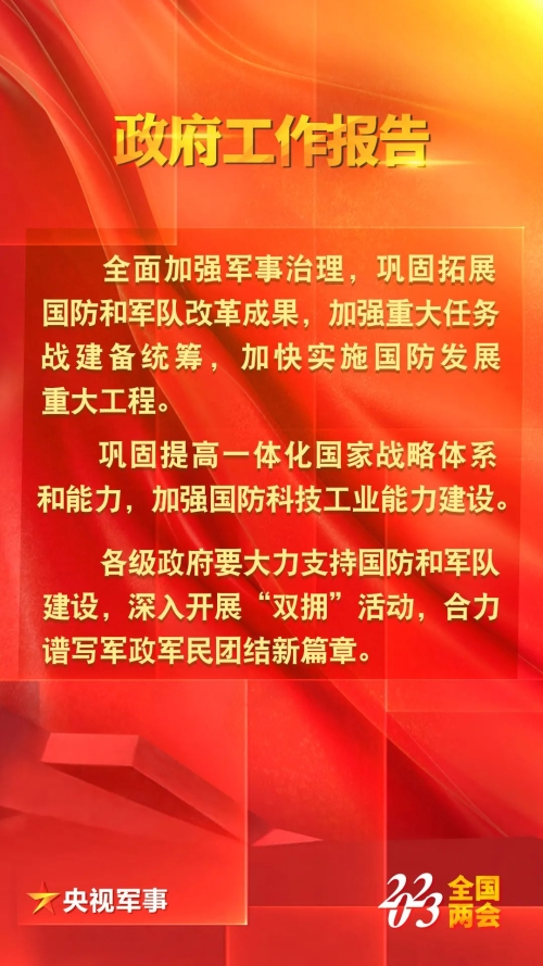 3月5日上午,第十四届全国人民代表大会第一次会议在京召开。国务院总理李克强作政府工作报告。关于国防和军队建设,政府工作报告提到了这些内容: