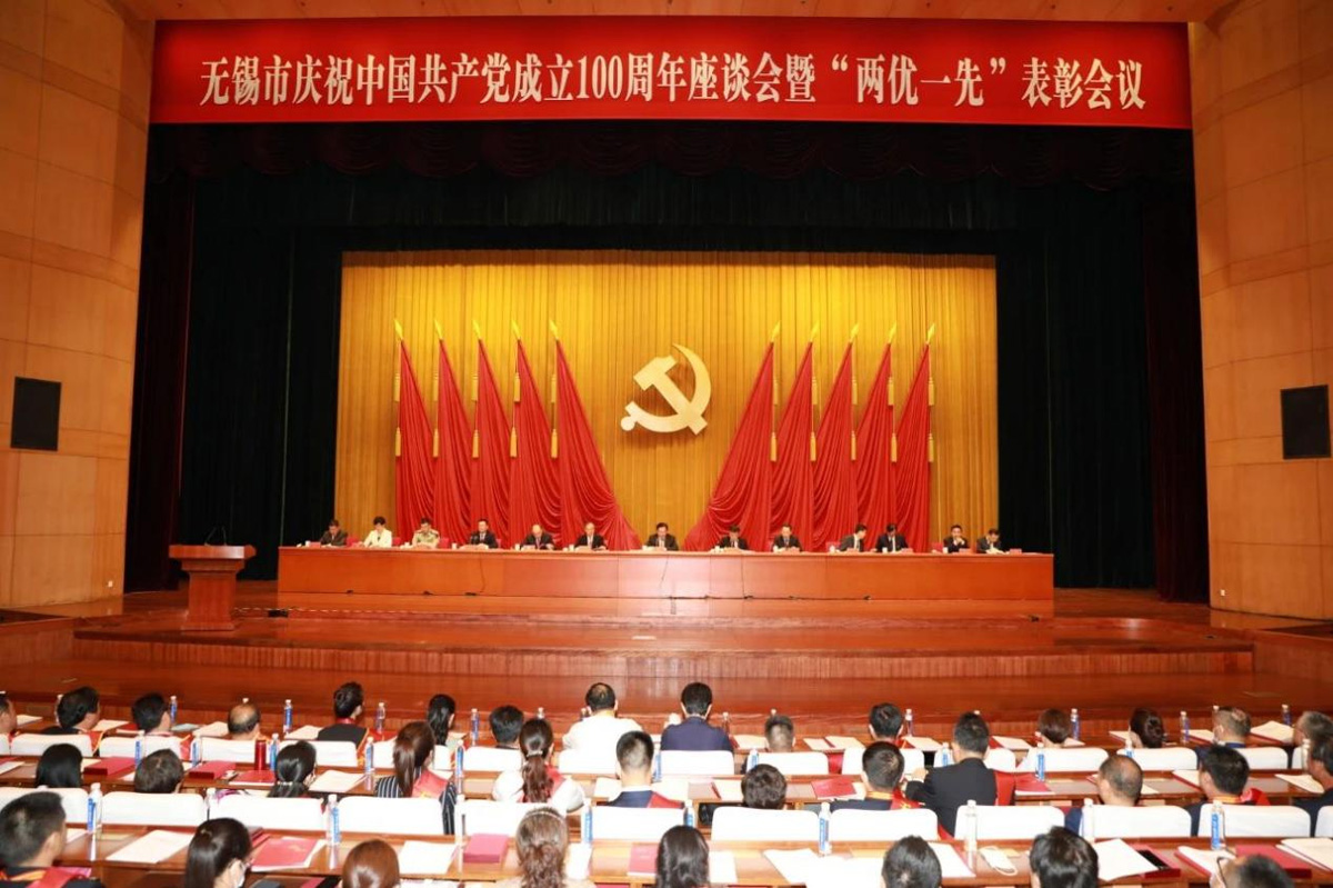 7月2日上午无锡市庆祝中国共产党成立100周年座谈会暨“两优一先”表彰会议在市人民大会堂隆重召开。