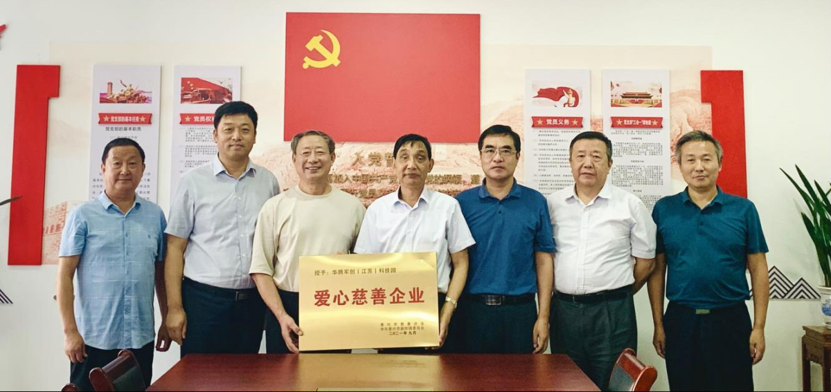 会后,张会长授予华腾军创(江苏)科技园有限公司“爱心慈善企业”称号,董事长潘维伍表示今后将继续“不忘初心,牢记使命”,履行社会责任,彰显企业担当。