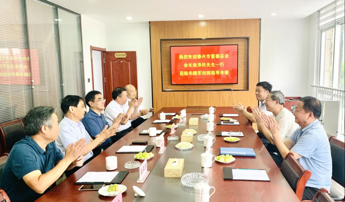 9月8日,泰兴市慈善总会会长张泽民先生一行莅临华腾军创(江苏)科技园有限公司指导考察,原泰兴市民政局副局长、现任泰兴市慈善总会副会长许光明、泰兴市新街镇党委书记陈荣军、泰兴市新街镇党委副书记、镇长吴洋、泰兴市新街镇副镇长陈志俊、泰兴市新街镇宋福村党支部书记陈爱军等陪同调研。