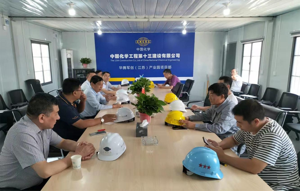 会议上,潘维伍董事长听取了项目负责人关于工程建设有关情况的汇报,对当前所做的工作给予肯定,并对项目下阶段的建设施工情况进行了详细部署。指出:一要确保工程质量,统筹推进,建设高质量的项目;二要确保工程进度,严格按照规定时间完成项目建设;三要确保生产安全,严抓施工过程的安全,发现问题及时整改,切实消除安全隐患。华腾军创(江苏)产业园项目将坚持高质量发展导向,打造高品质园区,为建设“强富美高”的新梁溪做出贡献。我们参与项目的建设者将严把质量关、进度关,又快又好地完成工程建设,将产业园项目打造成梁溪区示范工程、亮点工程,体现出军人过硬作风、高效快速的效率。