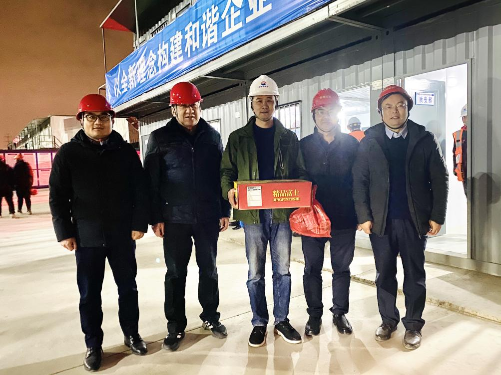 2021年12月31日晚,华腾军创园副总经理任旭东深入产业园项目工地走访慰问,向每一位默默坚守在一线的工人们,致以节日的问候和新年的祝福。综合部、工程部等部门领导陪同前往。