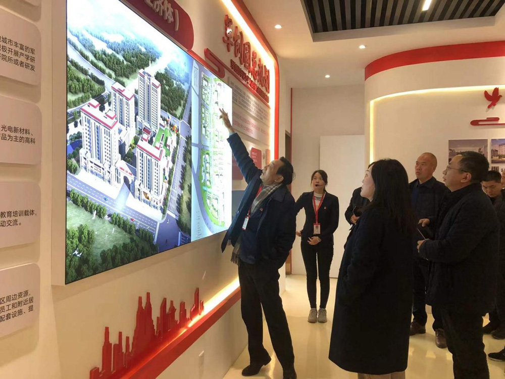 顾羽一行参观了华腾军创园展厅,听取园区成立背景、政策扶持、园区规划、招商引企等方面的介绍,详细了解园区的基本情况。