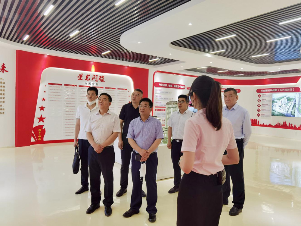 座谈会前,曹伯宏一行参观了华腾军创园展厅,听取园区成立背景、政策扶持、园区规划、招商引企等方面的介绍。