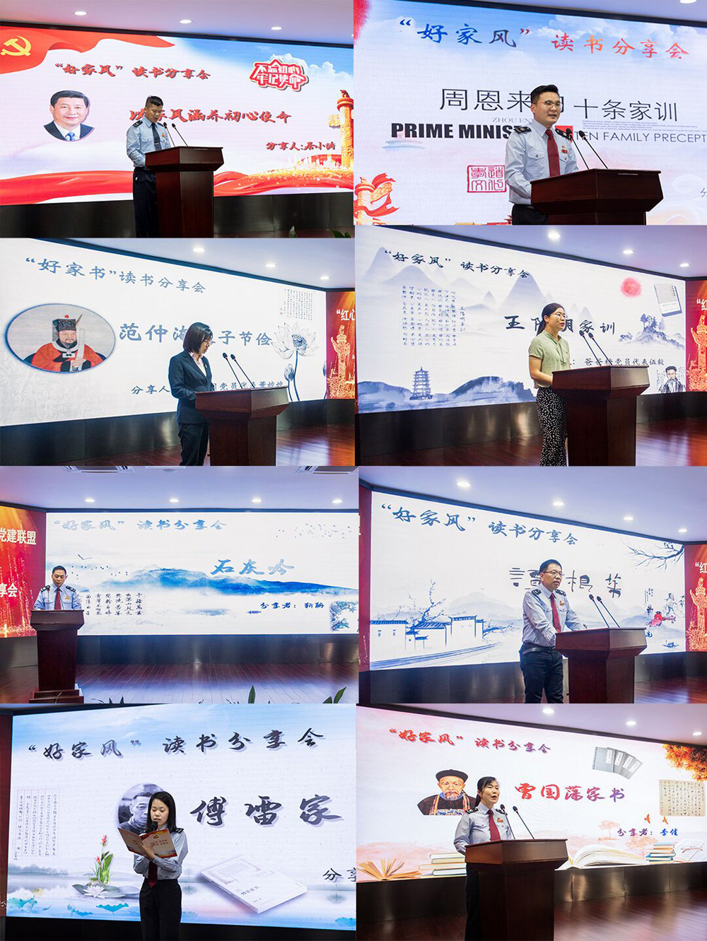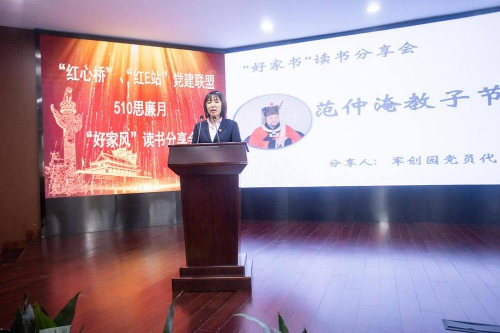 “好家风”读书分享会将活动推到了高潮,各位党员代表们分享了古今名人勤廉家风家训故事,从《范仲淹教子节俭》、《菜根谭》、《石灰吟》、《王明阳家训》、《曾国藩家书》、《傅雷家书》,到《周恩来的十条家规》、《习近平家书》,一个个质朴、生动的家风故事,给党员干部们留下了深刻的印象和感悟。华腾军创园党员代表带来的是《范仲淹教子节俭》的故事分享。家风如雨点,润物细无声,只有重视家风建设,弘扬优良家风,才能实现个人健康茁壮成长、家庭平安幸福、社会文明和谐。