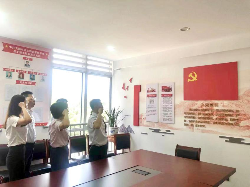 学习会前,各党员同志佩戴党徽、紧握右拳、面向党旗,举行了重温入党誓词活动。铮铮誓言、铿锵有力,表达了争做一名合格党员的态度和决心,体现了对党的无限忠诚。