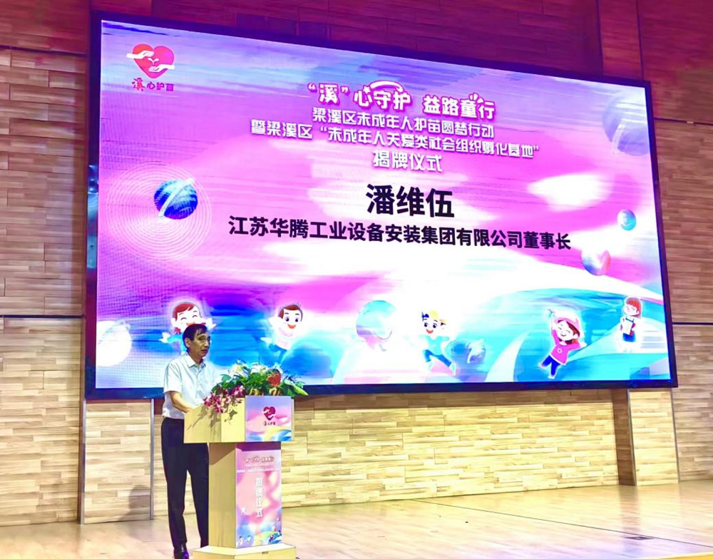 关爱困境儿童,让行动落到实处。8月26日,梁溪区未成年人护苗圆梦行动暨梁溪区“未成年人关爱类社会组织孵化基地”揭牌仪式隆重举行。华腾集团、华腾军创园董事长潘维伍受邀出席仪式现场并作为爱心企业代表发言。