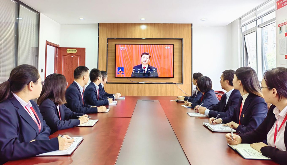 开幕式当天,组织全体党员、员工集中收看党的二十大现场直播盛况,认真聆听习近平总书记代表第十九届中央委员会向大会所作的报告,既感受了过去五年来的历史巨变,又置身于报告描绘的未来宏伟蓝图中,不时提笔记录报告内容和所思所想,洋溢着浓厚的学习氛围。
