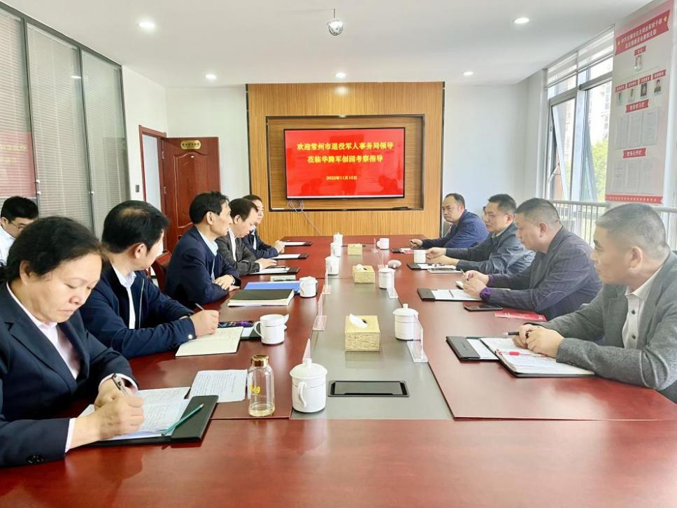 11月10日上午,常州市退役军人事务局党组成员、副局长尹志平一行莅临华腾军创园考察指导工作,无锡市退役军人事务局副局长张赟、梁溪区退役军人事务局局长吴兴云、华腾军创园董事长潘维伍等领导陪同。