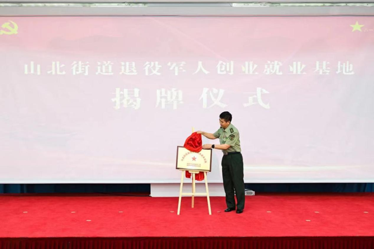 戴雁为山北街道退役军人创业就业基地揭牌