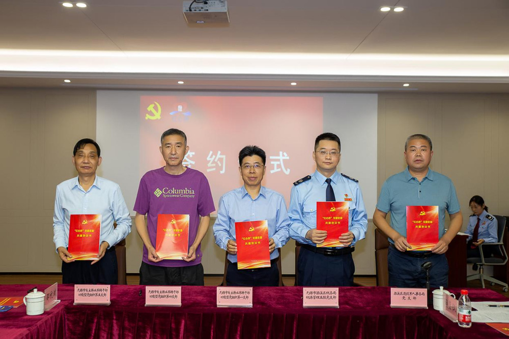 在各位领导、代表的共同见证下,国家税务总局无锡市梁溪区税务局税源管理五股党支部、无锡市梁溪区退役军人事务局党支部、无锡市自主择业军转干部功能型党组织第一、第四、第五支部5名联盟代表正式签署协议。