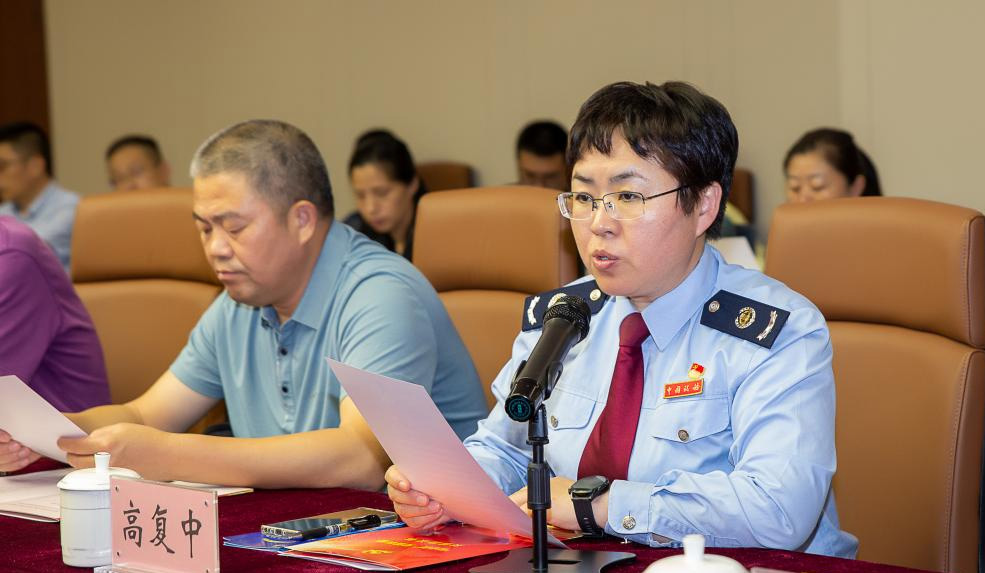 梁溪区税务局税源管理五股党支部组织委员、四级主办高复中宣读了“税惠添翼促双拥、携手护航军创梦”行动服务十条。