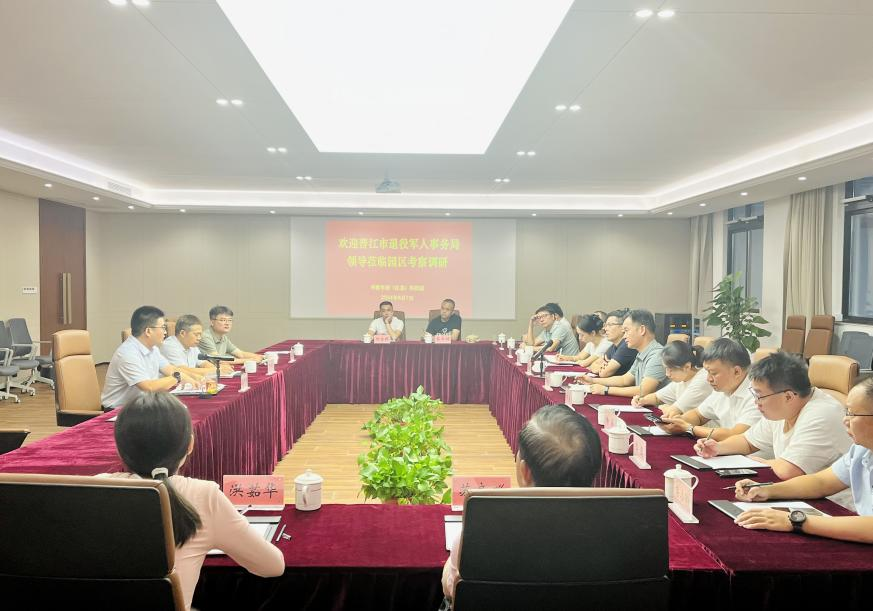 8月7日,晋江市退役军人事务局党组书记、局长陈金尚带队一行14人莅临华腾军创园考察调研,无锡市梁溪区退役军人事务局副局长丁坤庭、维权就业科科长王玉宝等陪同。