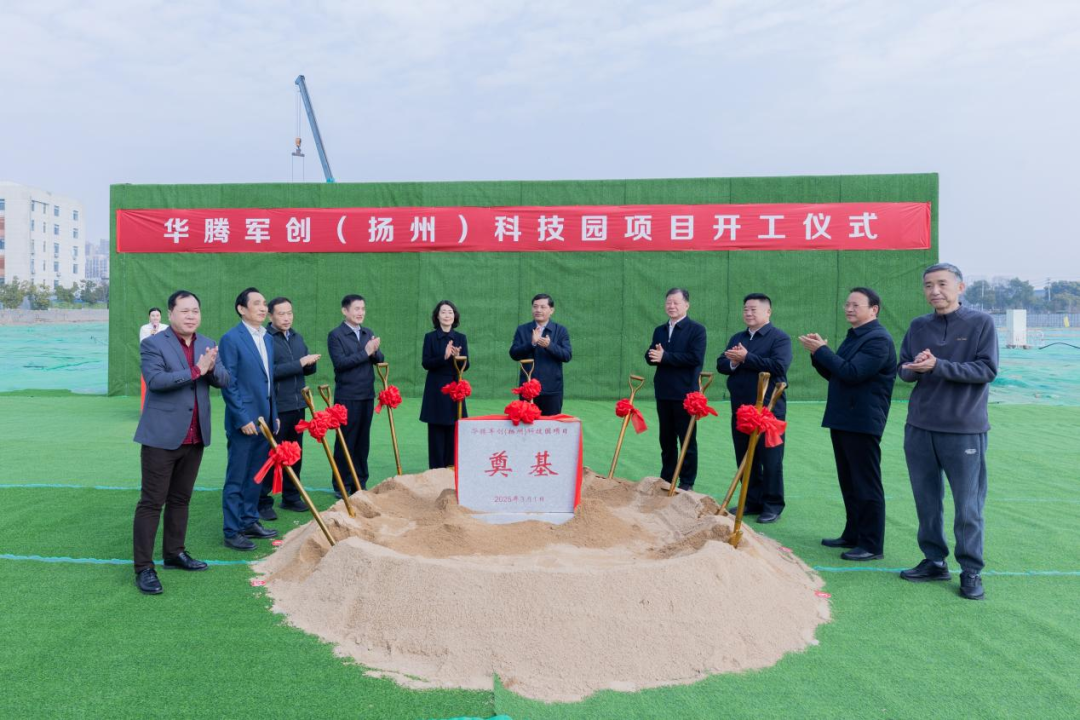 3月1日上午,华腾军创(扬州)科技园开工仪式在扬州经济技术开发区举行。江苏省退役军人事务厅副厅长、一级巡视员陈旭,扬州市人民政府副市长刘流,无锡市政协党组成员高圣华,扬州市退役军人事务局局长陆志林,江苏省消防协会会长蒋正林,扬州经开区管委会副主任臧灿甲等10位领导共同执铲,为项目奠基培土。来自省退役军人事务厅、扬州市机关单位、经开区管委会、扬州市退役军人事务局、无锡市退役军人事务局、行业协会、施工单位和入园企业等百余位嘉宾齐聚现场,共同见证这一重要时刻。