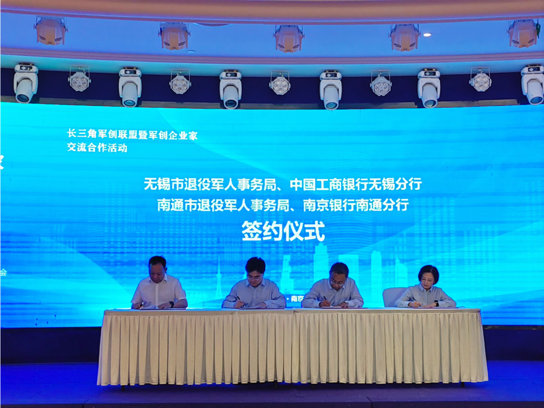 此外,还举行了多场签约仪式,无锡、南通、连云港、泰州等市退役军人事务局与金融机构达成合作,江苏省退役军人就业创业服务中心和就业服务机构、创业园区签订合作协议,长三角地区退役军人社会组织共同签署“协同发展” 协议书。一系列签约聚焦资源对接、政策扶持、服务优化等领域,将有力推动长三角军创事业协同发展迈向新台阶。