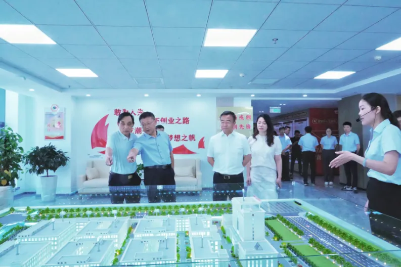 军创园宣讲员带领参会领导深度探园——沉浸式文化长廊:通过荣誉墙、军创故事展,展现退役军人"退伍不褪色"的奋斗精神;沙盘战略点睛:董事长潘维伍亲自讲解园区 "孵化-加速-产业化"三级推进体系,重点推介新能源、智能装备等5大军创特色产业板块,彰显"让军创项目扎根扬州辐射长三角"的使命担当。