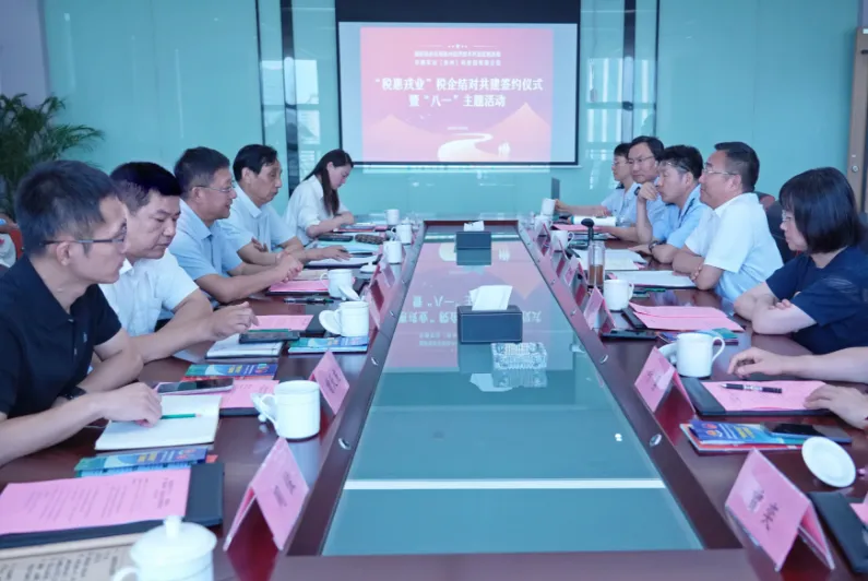 在全体见证下,秦国宝局长与潘维伍董事长签署《税企结对共建协议》,现场启动,专属联络员机制:提供“一企一策”精准服务;企业精准结对:5家军创龙头与税务骨干"一对一"绑定。