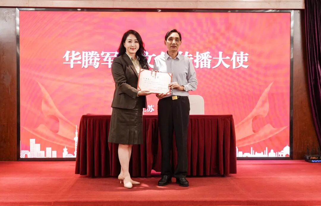 首先进行的是华腾军创文化传播大使受聘仪式。上海市军创会执行秘书长、徐汇区最美退役军人陈炜受聘出任。此举旨在借助其影响力与专业能力,深度挖掘与传播军创文化,共同塑造沪扬军创联盟的品牌形象。