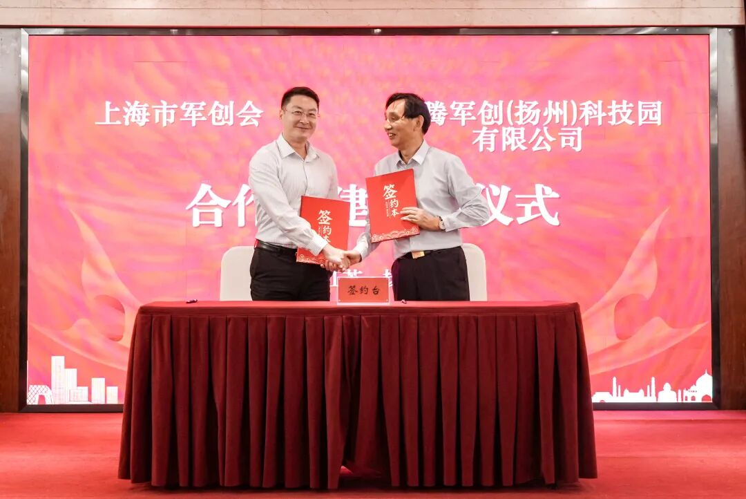 紧接着,双方合作完成战略性升级。上海市军创会创始副会长、上海市最美退役军人向奎,与华腾军创(扬州)科技园董事长潘维伍,分别代表双方签署了合作共建协议。这份协议将推动双方从单次活动交流,转向常态化、制度化的深度合作,为后续资源互通与项目落地构建了坚实的顶层框架。