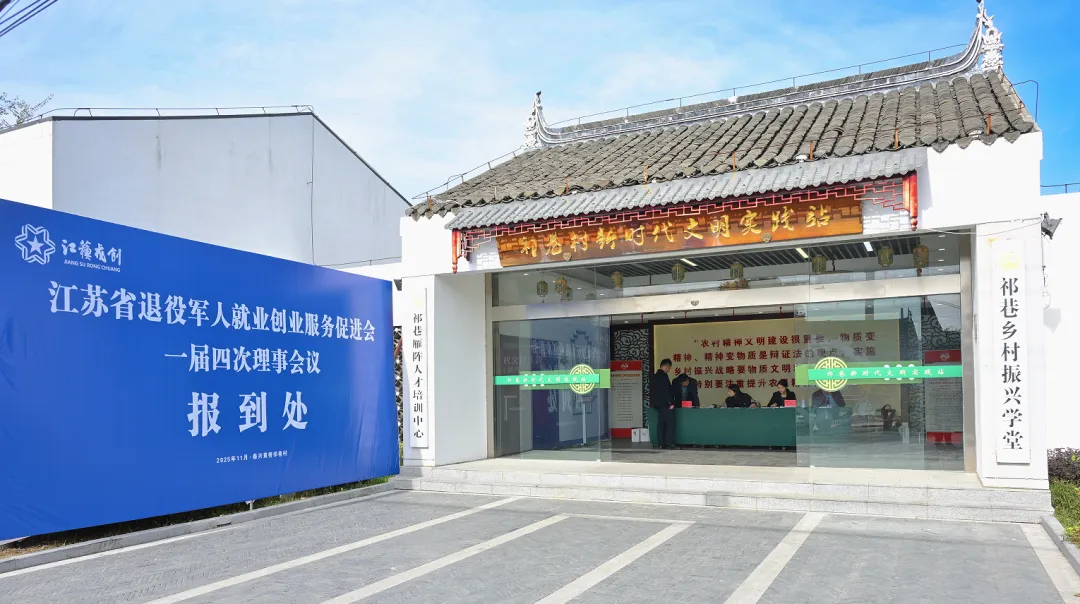 初冬的泰州泰兴祁巷村,银杏初黄,生机盎然。2025年11月3日至4日,江苏省退役军人就业创业服务促进会一届四次理事会议在此隆重召开。华腾军创园作为副会长单位全程参与,与全省优秀军创企业代表共聚一堂,深入学习习近平总书记关于退役军人工作的重要论述,共商退役军人就业创业高质量发展大计。